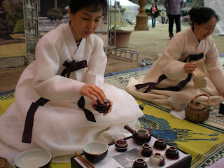 Budha's Birthday is not for another week or two, but since Budha's Birthday is on par with Christmas over in Korea, there were all sorts of opportunities to "catch the spirit." Here we were taught how to properly drink tea, the Korean way.